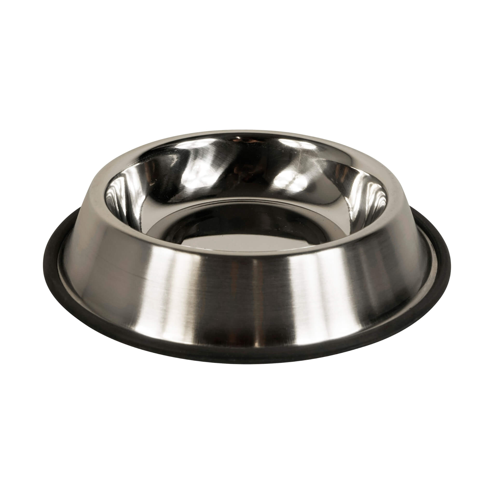 Ecuelle en acier inoxydable pour chats ou chiens avec anneau en caoutchouc noir fixe, extérieur mat, intérieur poli.235 ml